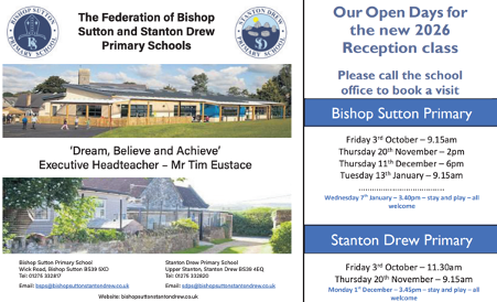 We are a Federation of two primary schools in the beautiful Chew Valley. Both schools are very much involved in the local community, as well as the wider Chew Valley Community. We have very strong links to Chew Valley Secondary School and are part of the same MAT (Multi Academy Trust.)